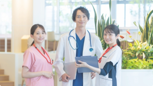 医師・CPAP療法士を中心に、各部門のスペシャリストが連携をとり、全員で患者様をサポートするチーム医療を実践しております。当院にはCPAP療法士が常駐しており、患者様の症状だけでなく、お仕事上のお困りごとなどについても丁寧にヒアリングし、正確な診断と適切な治療へとつなげます。