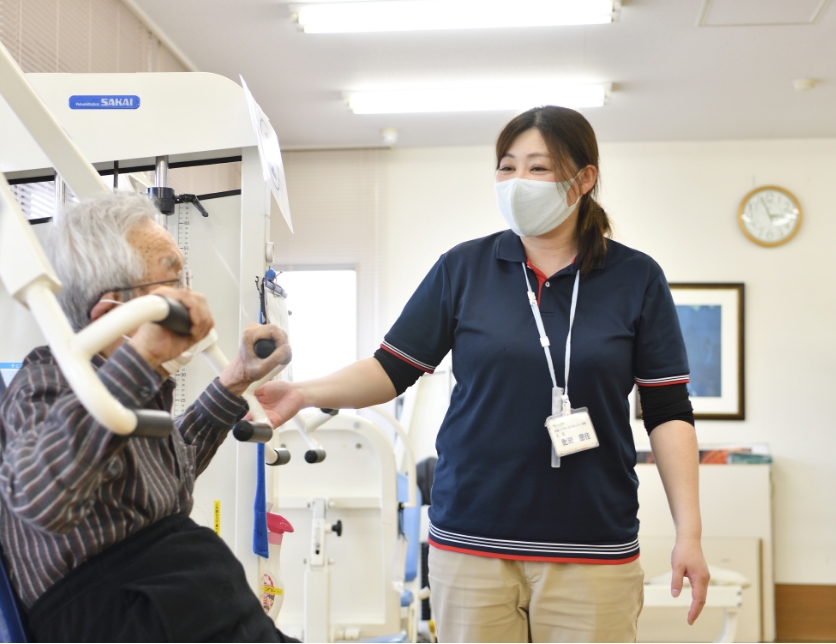 全6種類のマシンが揃っており、日常生活動作に必要な機能を維持していきます。全機種座ってのマシントレーニングで、スタッフがついており一緒に行います。 -