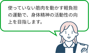 ポイントは“軽い負荷”にあり、心臓に与える負担は、入浴よりも少し軽い程度にとどまります。