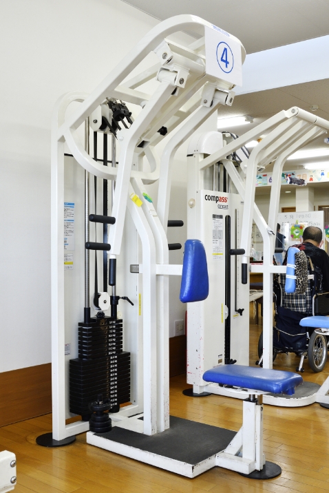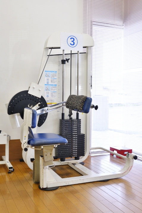 メディカル機器としての承認を受けたリハビリ専用のトレーニングマシン6台を使用します。各マシンでは、座位の正しいポジショニングで軽い負荷をかけ、同じ軌道の正確な運動を繰り返し行うことができます。
